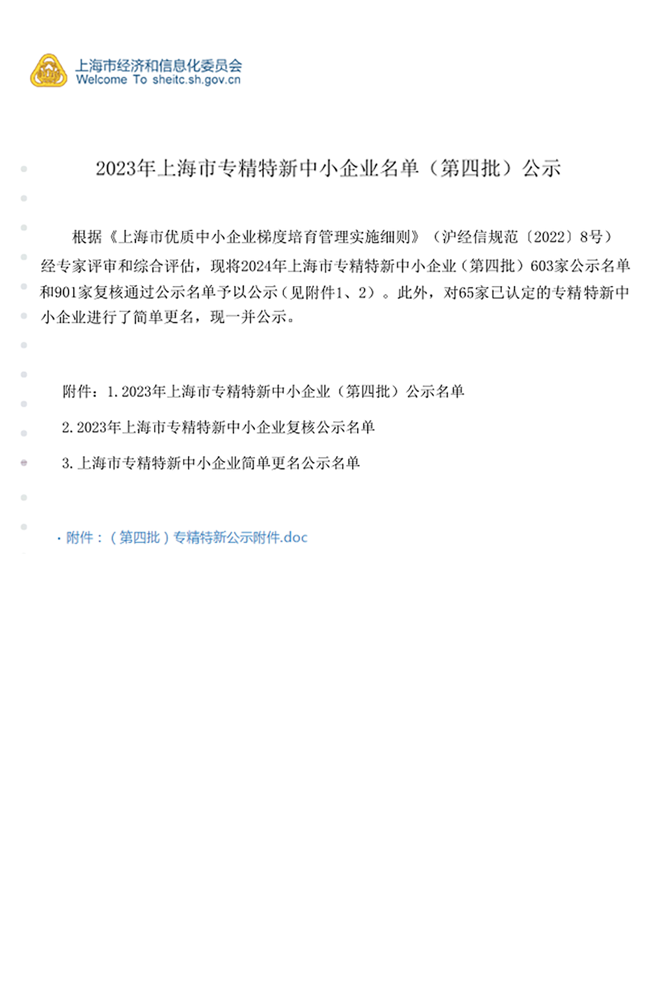 1-8上海優變電力科技有限公司成功入圍2023年上海市專精特新中小企業